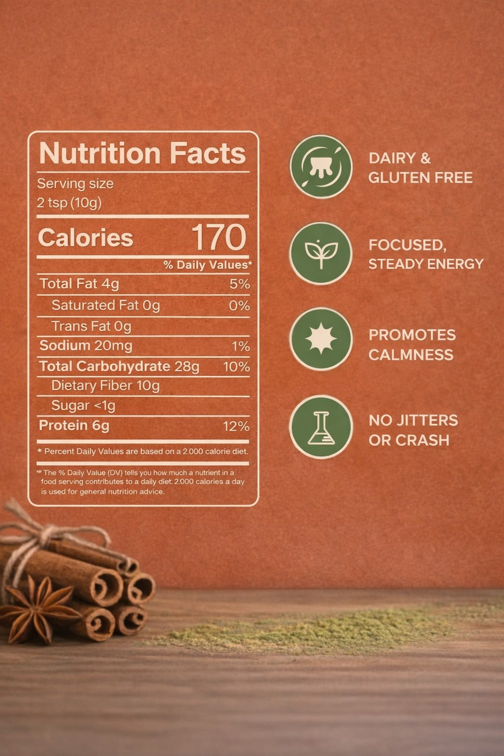 🌿 Ingredients: Matcha & cinnamon — nothing artificial.